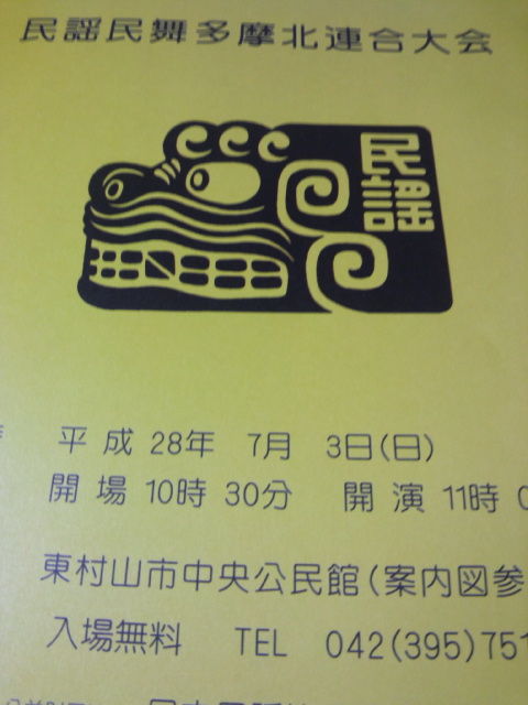 今度の日曜日でもある7月3日(日)には平成28年度 公益財団法人日本民謡協会 民謡民舞多摩北連合大会が開催されます♪