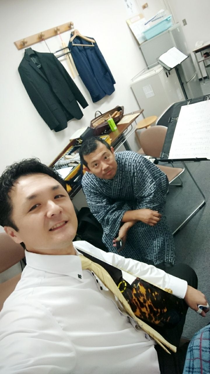 楽屋にて、三味線専属伴奏(男)の二人でパチリ☆