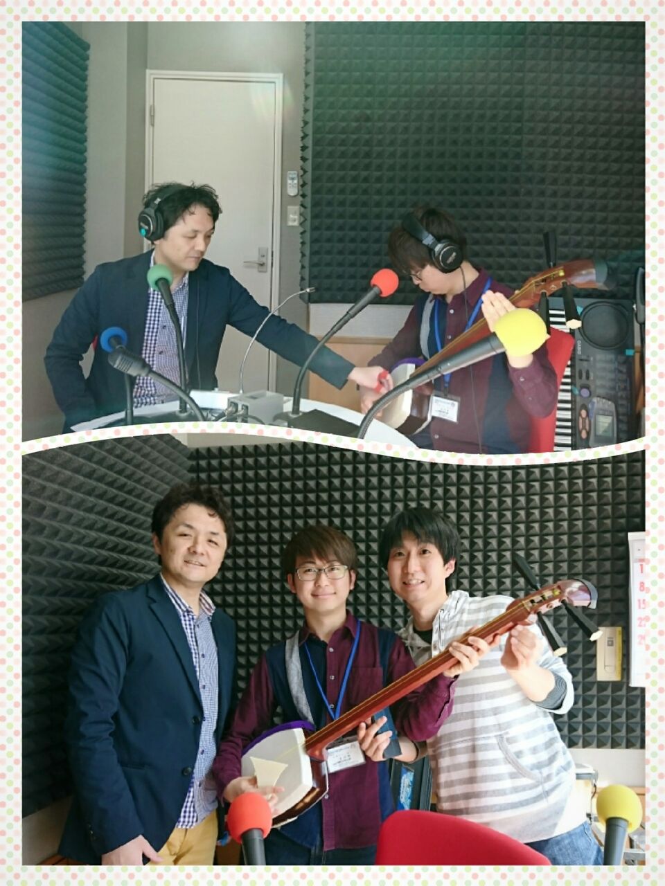 今回も教室の紹介の他、津軽三味線の出張稽古体験をパーソナリティーの方にしてもらい、楽しんでもらいました!ちなみに体験されたパーソナリティーのりょう君は大学の後輩でした♪
