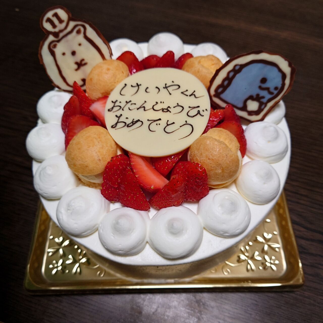 ケーキには妻のお手製のすみっコぐらしのキャラのチョコプレートも👍