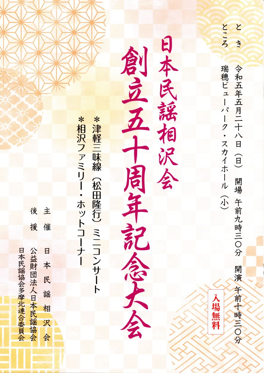 明後日、5月28日(日)は日本民謡相沢会の創立50周年記念大会が開催され、家元/二代目 三山貢正・松本 理恵がゲスト出演致します♪
