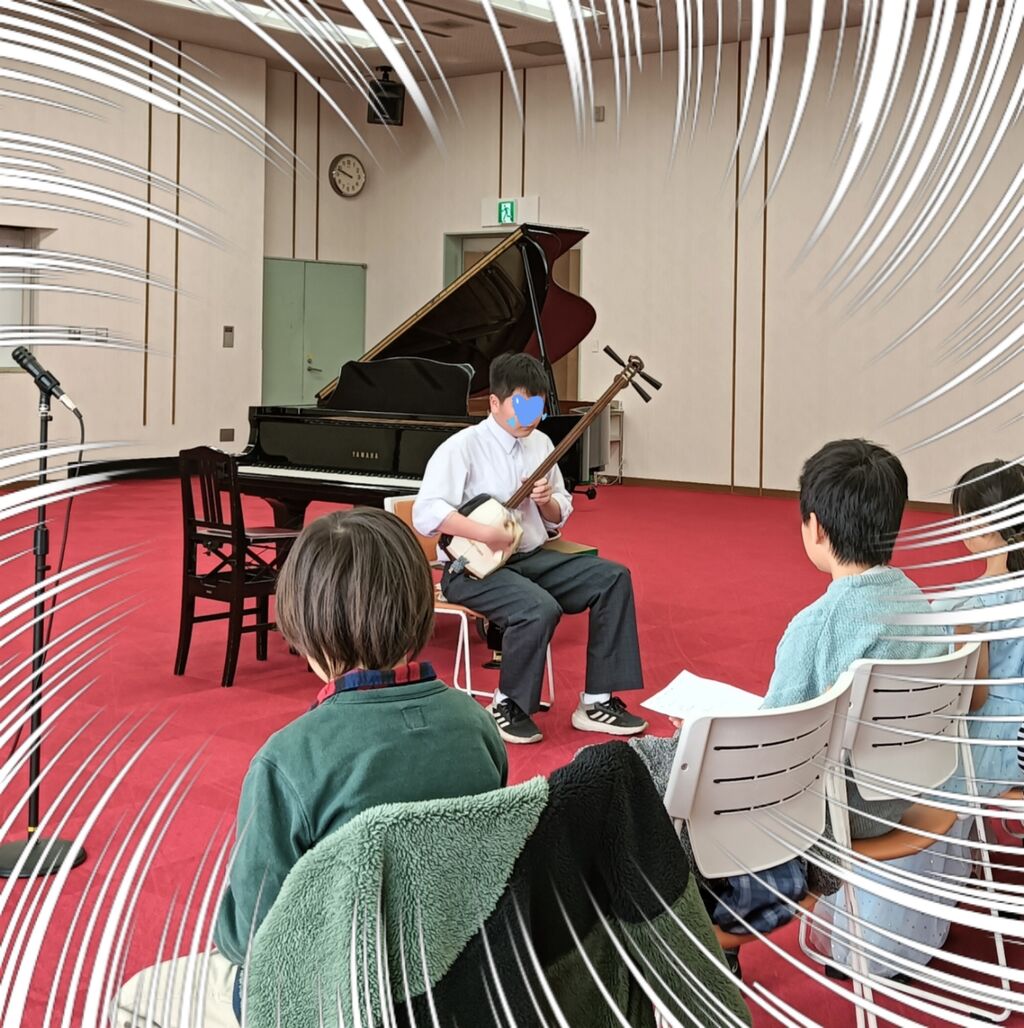 25-12-27-11-17-08-636_deco3男(中1)が通っているピアノ教室の「おさらい会」があり、発表会とは違って映画やゲームやアニメの曲、POPSなど自分の好きな曲を選んでそれぞれがピアノを発表する中、息子は2年前に弾く機会をいただいた経緯もあり、先生から津軽三味線の独奏を依頼され演奏させてもらいました🎶