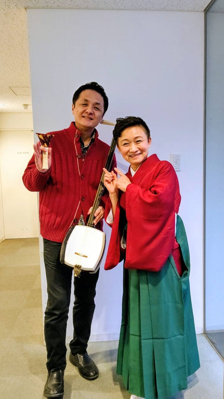 サプライズにてこみち師匠の「出囃子」に津軽三味線で華を添えさせていただき、「掛取萬歳」演目中の芝居のBGM(ハメモノ)を一部担当し、少しお話でも舞台に出演しお邪魔しました🎤