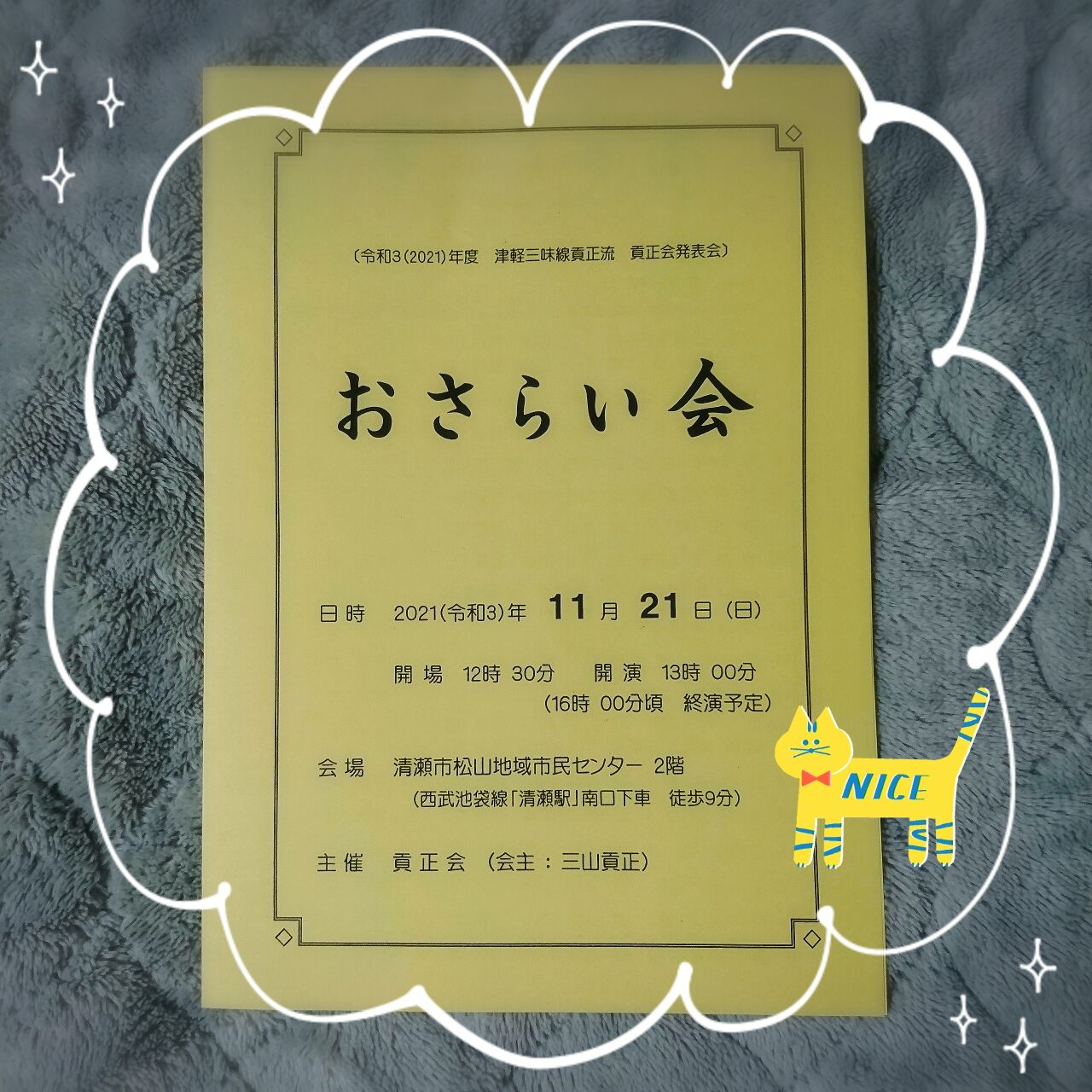 新型コロナウイルス感染症の流行に伴いまして本年もこの春の開催を断念しました貢正会発表会でしたが、規模を縮小し出演者以外「無観客」などの感染症防止対策を行いまして去る11月21日(日)に「おさらい会」を開催致しました。そして、開催後に保健所からの連絡待ちの期間の2週間が昨日晴れて過ぎましたので、本日をもって無事に「終了」のご報告をさせていただけることとなりました。