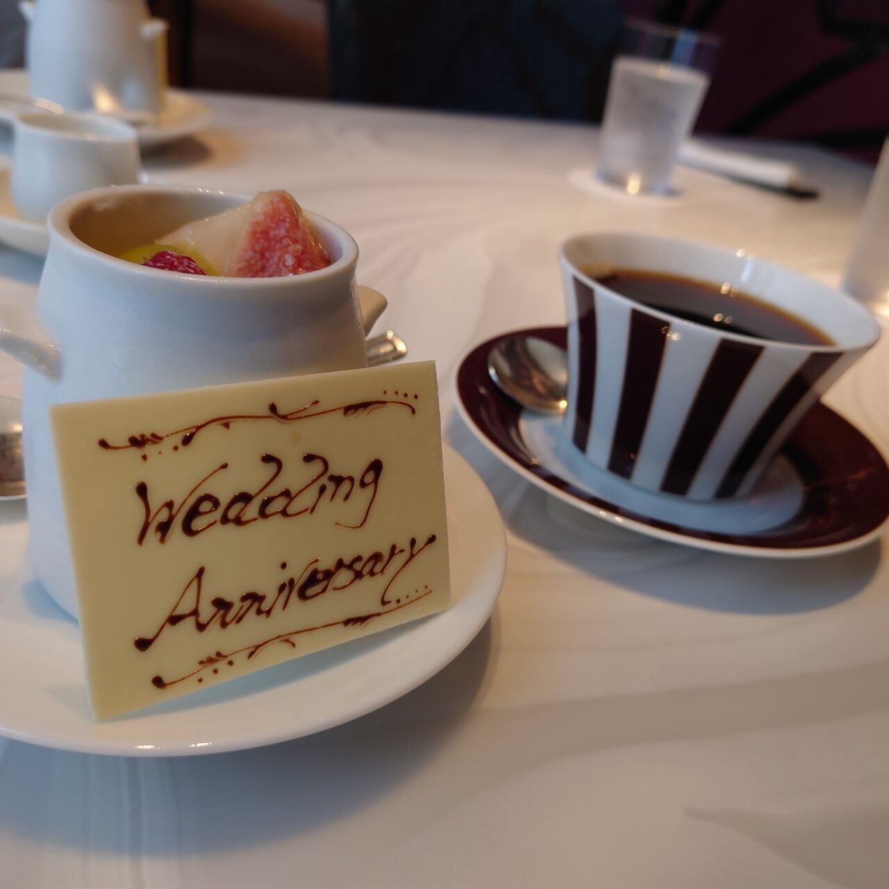 あいにくの雨模様からの1日のスタートでしたが、美味しい食事🍴と、デザートには嬉しいサプライズプレートのプレゼントもあり、大満足でした😊